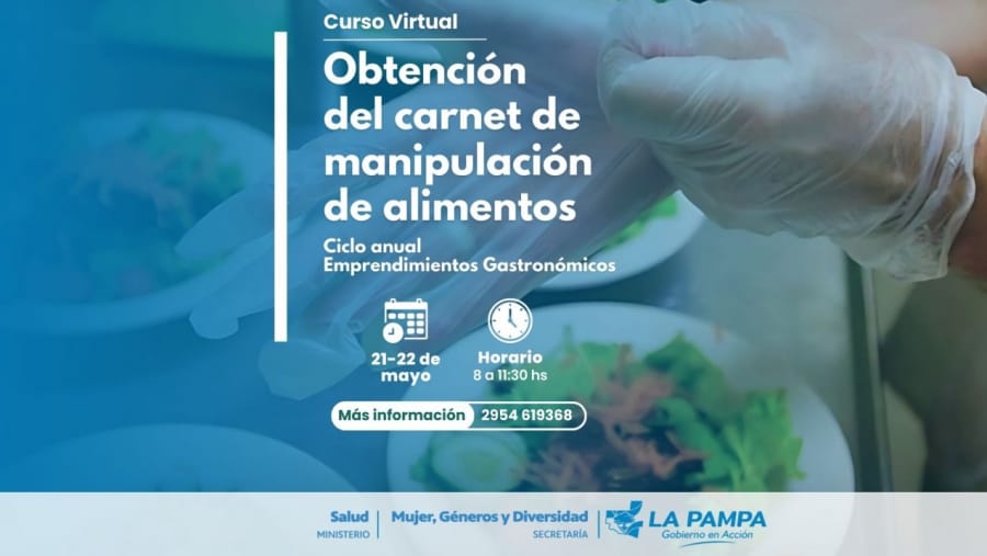 La Secretaría de la Mujer, Géneros y Diversidad y el Ministerio de Salud a través del Departamento de Bromatología invitó a participar de esta nueva edición del curso para la obtención del carnet de manipulación de alimentos. El carnet de manipulación de alimentos es único e intransferible, reemplaza la Libreta Sanitaria, es obligatorio para todas aquellas personas que manipulan alimentos para su elaboración y comercialización y tiene una vigencia de tres años. La capacitación es dictada en forma gratuita por el Departamento de Bromatología del Ministerio de Salud de la Provincia y está destinada a emprendedoras y personas que trabajan en actividades afines para obtener el carnet de Manipulación Segura de Alimentos. Por último aclararon que para obtener el carnet se necesita contar con DNI (con domicilio en La Pampa) y certificado de vacunación completa, el cual debe solicitarse en el centro de salud de la localidad.