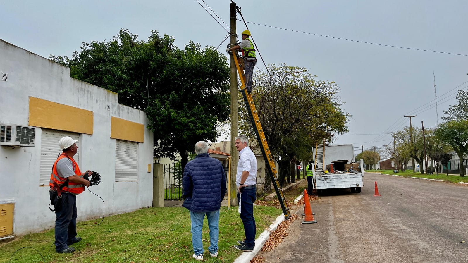 Desde la semana pasada, operarios de EMPATEL trabajan en el tendido de fibra óptica en Hilario Lagos, una obra que permitirá brindar conexión a internet de alta velocidad a más de 250 hogares y a todas las instituciones públicas, incluyendo el municipio, la escuela, la posta sanitaria, la comisaría y otros organismos gubernamentales.