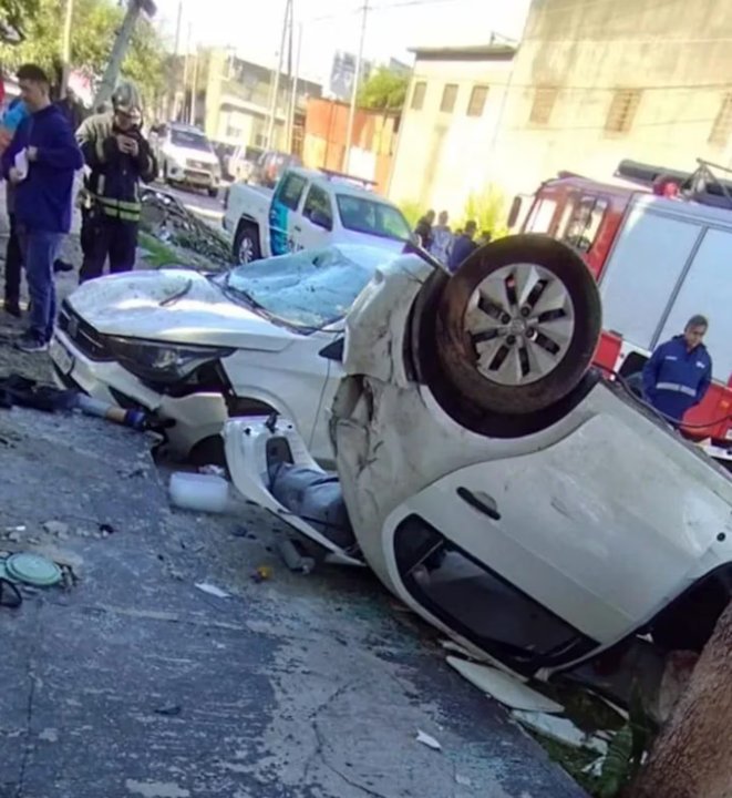Tras ello, el auto chocó contra un poste de luz, lo quebró y luego voló por el aire, al igual que la bicicleta de la víctima. Luego, impactó contra un Fiat Cronos blanco que estaba estacionado, lo pasó por arriba y terminó volcado sobre la vereda.