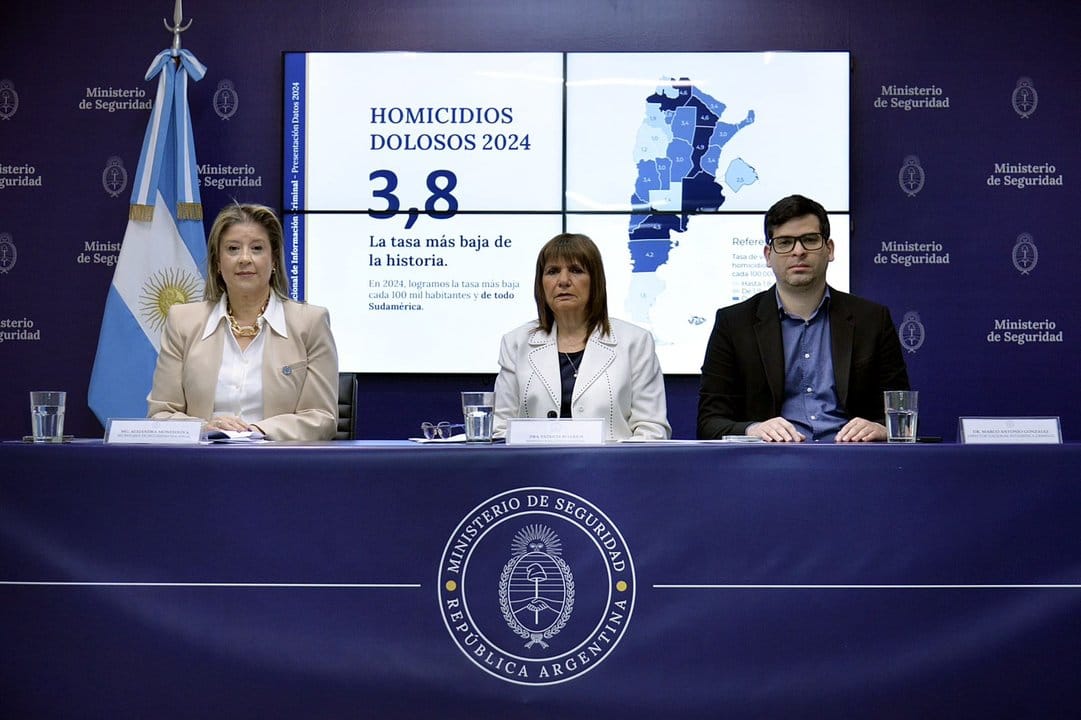 En 2024 se registró la tasa de homicidios más baja de la historia del país, según confirmó la ministra de Seguridad Nacional, Patricia Bullrich, a través de una conferencia de prensa. A su vez, habló sobre el índice de robos, femicidios, narcotráfico y trata de personas.