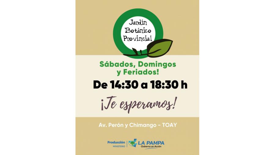 El Jardín Botánico Provincial a cargo de la Dirección General de Recursos Naturales del Ministerio de la Producción informó que estará abierto los días sábados, domingos y feriados de 14:30 a 18:30, con fines recreativos.