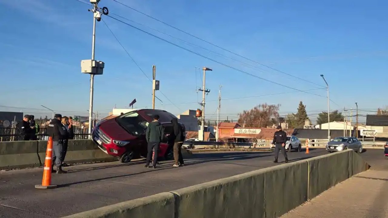 Un hombre perdió el control de su auto y quedó colgado de un puente en el ingreso a la ciudad de Neuquén, a la vez que no se registraron heridos.