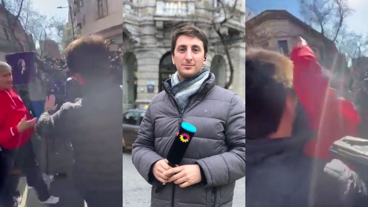El periodista se encontraba informando lo que sucedía en la calle donde se encuentra la propiedad de la expresidenta cuando fue interrumpido por los militantes que lo rodearon y comenzaron a entonar un cántico peronista con el fin de estropear el móvil en vivo.