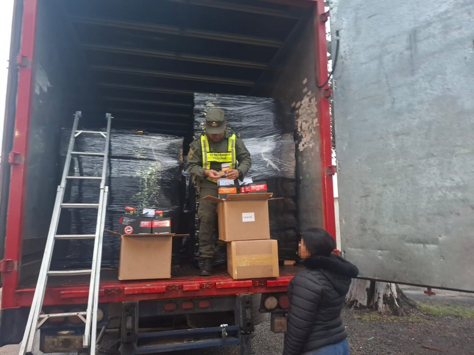 Al momento de requisar el contenido del camión, personal de la Fuerza constató la existencia de “cinco bultos con mercadería de origen extranjero sin la correspondiente documentación aduanera en infracción a la Ley 22.415”.