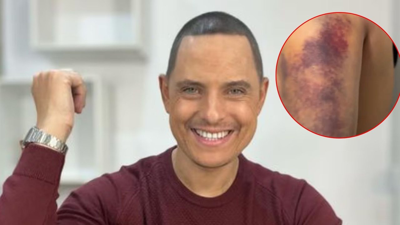 En las imágenes que compartió el periodista en sus redes sociales, se puede ver su lado izquierdo lleno de moretones y con una gran inflamación.
