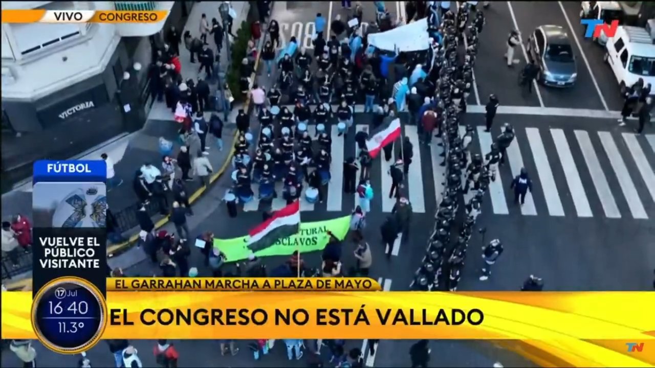 Un insólito momento se vivió este jueves en la pantalla de Todo Noticias (TN) durante una cobertura en vivo, cuando los periodistas confundieron una bandera de Chacarita Juniors con las de países de Medio Oriente, como Irán o Palestina. Según supo Noticias Argentinas, la transmisión se dio en el marco de una movilización con fuerte presencia policial en el centro porteño.