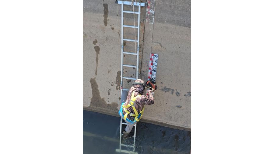 Personal de la Secretaría de Recursos Hídricos llevó a cabo la renovación de la escala de medición ubicada en el canal matriz del área de riego de 25 de Mayo, infraestructura que opera el Ente Provincial del Río Colorado (EPRC).