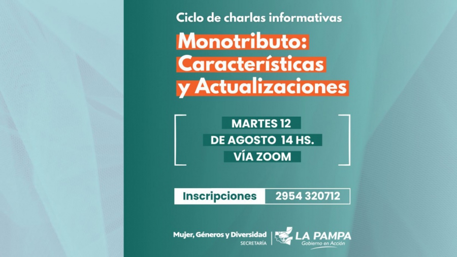 La Secretaría de la Mujer, Géneros y Diversidad invitó a participar de la charla online Taller Online “Monotributo: características y actualizaciones”, por plataforma zoom. La actividad se encuadra en el Ciclo de Charlas Informativas organizado por la Dirección de Promoción y Asistencia, con el fin potenciar la actividad económica independiente de mujeres y diversidades de toda la Provincia. La charla estará encabezada por el contador, Gustavo Raúl Elorriaga, quien trabajará sobre una agenda de temáticas generada a partir de las necesidades planteadas por las integrantes de la Red Pampeana de Mujeres y Diversidades Emprendedoras: Monotributo e Ingresos Brutos. Clases de monotributo (social y el ordinario de AFIP). Actualidad de los beneficios sociales, Categorías y montos. Cómo se tributa y cuánto es el costo total impositivo que debo afrontar por mes, su complemento con la inscripción en Ingresos Brutos, actualizaciones vigentes en la legislación impositiva.