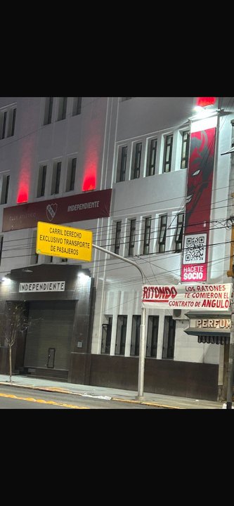 “Ritondo, los ratones te comieron el contrato de Angulo” y “Hagan como el cagón y mentiroso de Marconi y renuncien todos” fueron los mensajes que aparecieron colgados en las inmediaciones de la sede, en clara alusión al escándalo por la salida de Álvaro Angulo y a la gestión del vicepresidente Cristian Ritondo.
