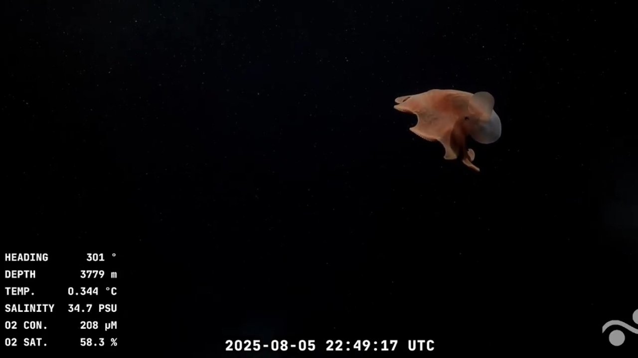 Según supo Noticias Argentinas, el descubrimiento se produjo durante la exitosa transmisión en vivo de la misión “Talud Continental IV”. El robot submarino ROV SuBastian logró captar imágenes de un cefalópodo rosado nadando a 3.781 metros de profundidad, en un entorno sin luz y con temperaturas de apenas 2°C.