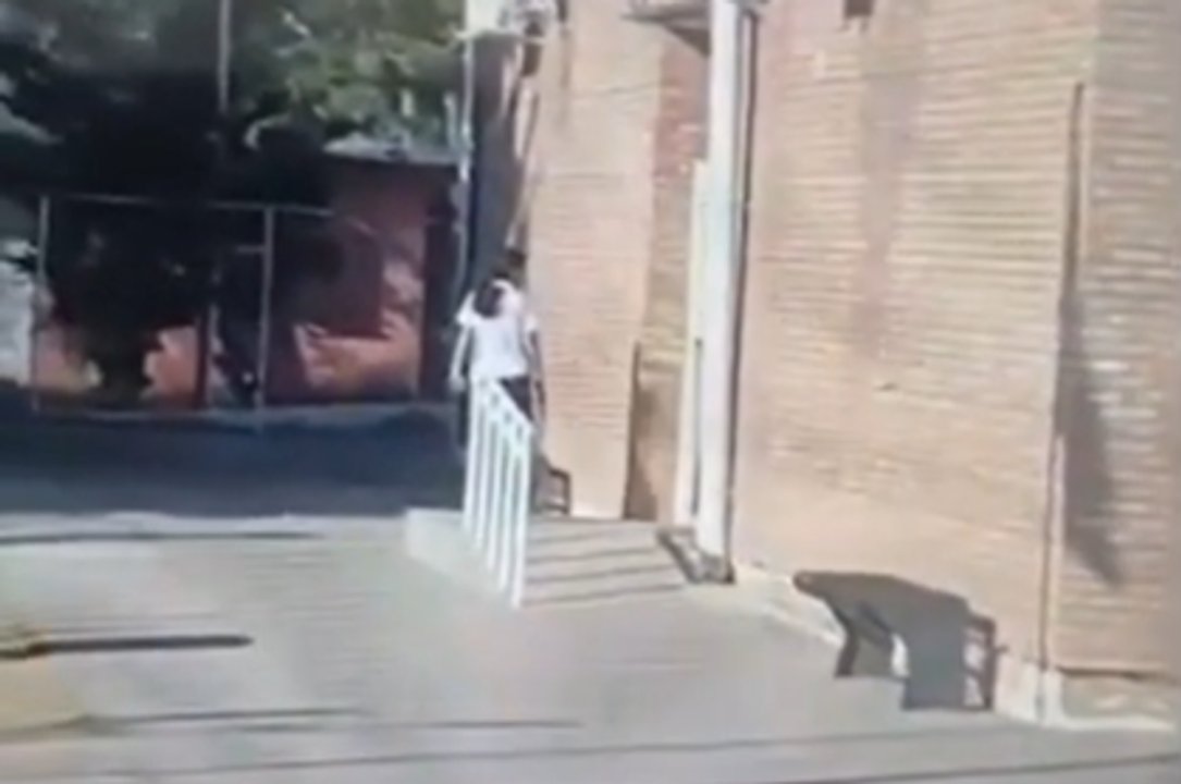 En las imágenes se observa a la adolescente con una pistola en sus manos y caminando de un lado para otro en la puerta de la Escuela 4-042 Marcelino H. Blanco, en La Paz.
