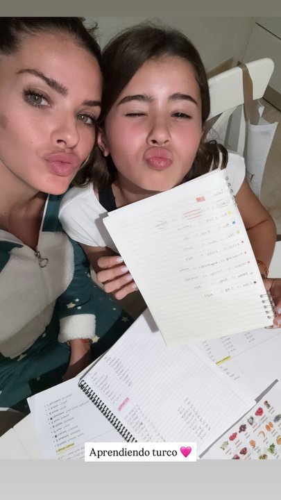 En una mesa con apuntes, la China filmó a su hija mayor Rufina -producto de su relación con Nicolás Cabré- contando del 1 al 14 en turco.