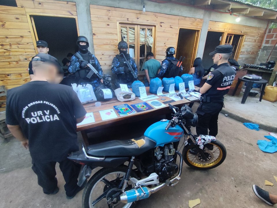 Este jueves, con orden del Juzgado Penal de Puerto Iguazú, se ejecutó un allanamiento que permitió desmantelar el “aguantadero” y presunto punto de acopio para posterior comercialización del estupefaciente.