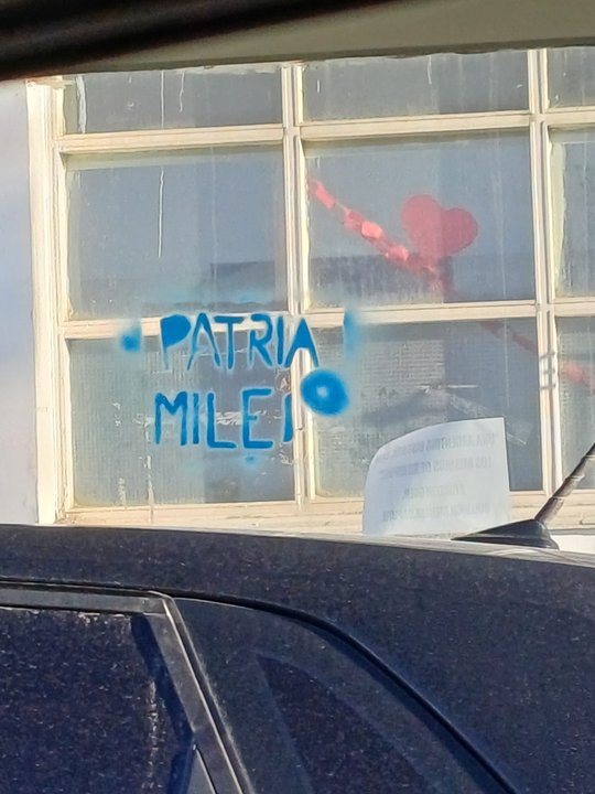 Por otra parte, las pintadas también hicieron referencia a las supuestas coimas que habría recibido la secretaria de Presidencia y hermana del presidente, Karina Milei, desde la Agencia Nacional de Discapacidad (ANDIS): “Alta coimera – 3%”, se lee en las paredes.