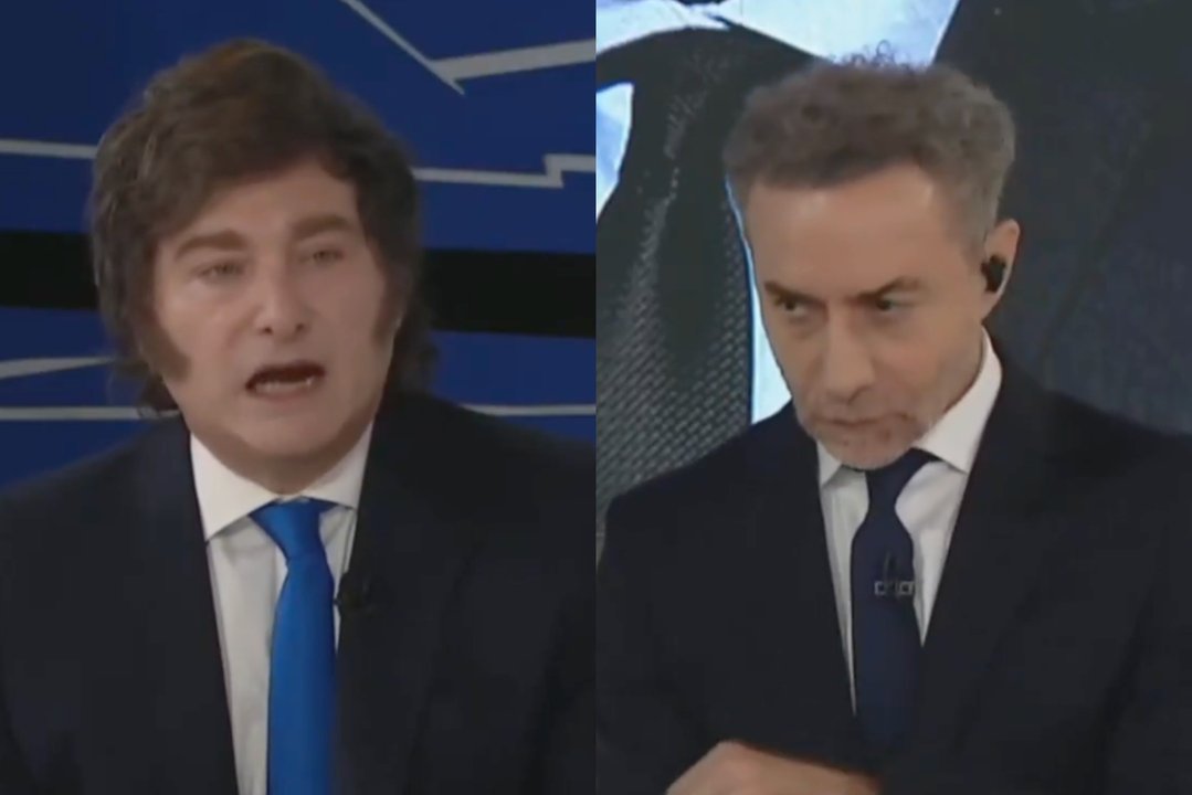 “Luis, ¿usted cree que la vida es un balotaje? Le hago una pregunta, ¿cuántos partidos hay en Argentina ¿Cuántos hay en la boleta? Hay un montón. Sí. Bueno, en el balotaje hay dos solo. No comparemos peras con bananas, No. porque no Pero Pero para mí, si usted”, sostuvo Milei.