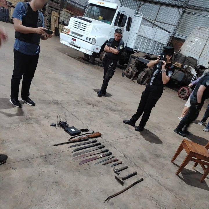 “En el sitio se secuestraron un rifle calibre 22 con seis cartuchos, cinco machetes, un cuchillo tipo puñal, un látigo de goma de fabricación casera, dos martillos tipo maza, y teléfonos celulares, entre ellos uno perteneciente al denunciante”, sumaron.