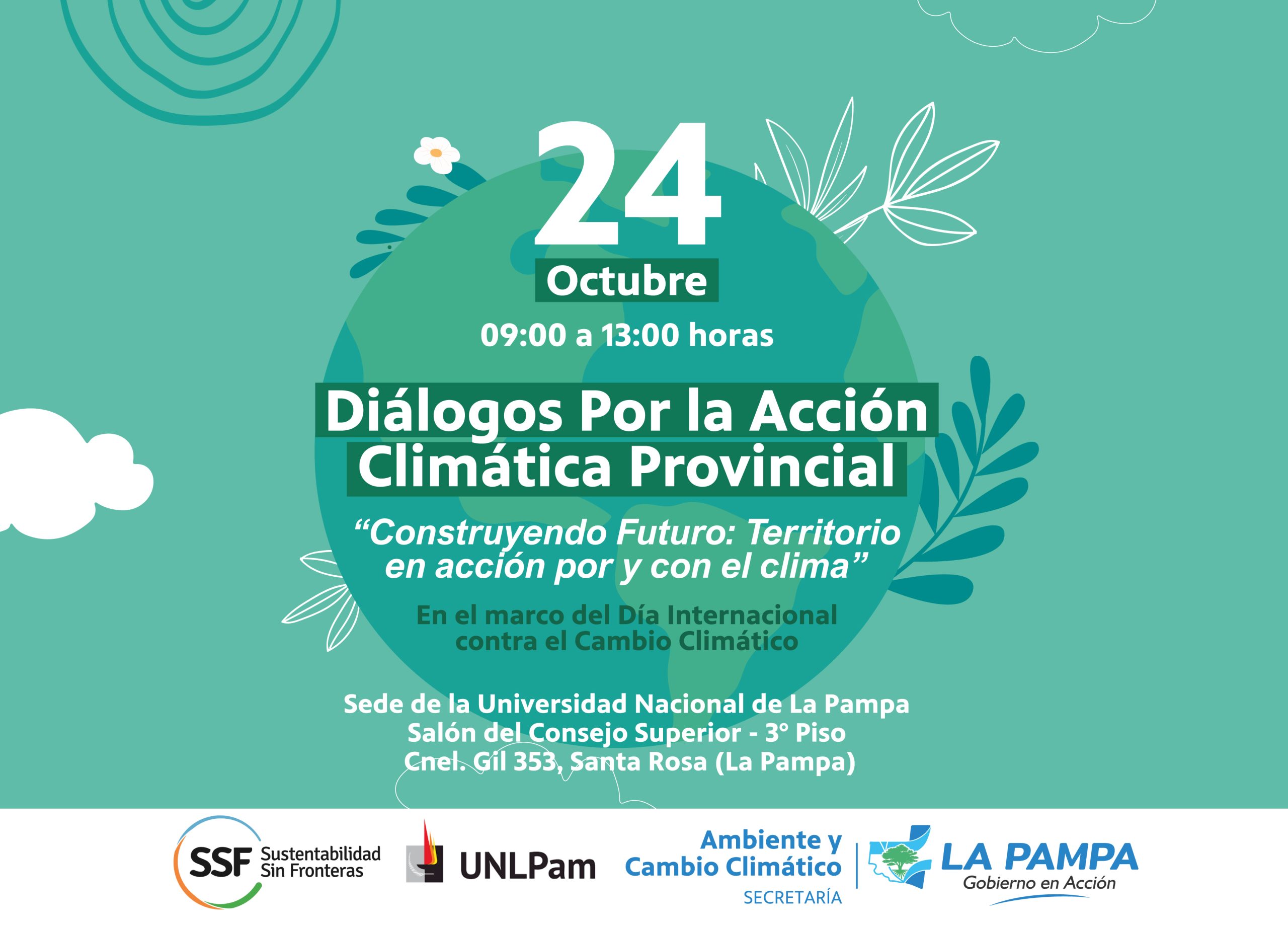 En el marco del Día Internacional de la Lucha contra el Cambio Climático, la Secretaría de Ambiente y Cambio Climático del Gobierno de La Pampa, en conjunto con la Universidad Nacional de La Pampa y la organización Sustentabilidad sin Fronteras, llevará adelante una jornada de trabajo e intercambio titulada “Diálogos por la Acción Climática Provincial”.