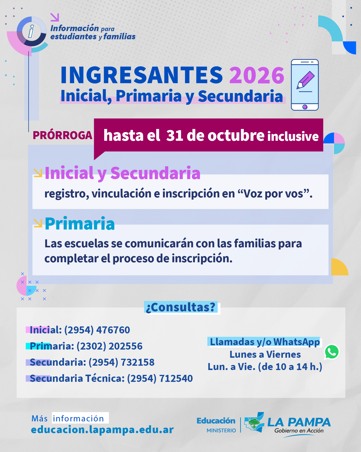 Para obtener más información, pueden visitar el sitio web https://educacion.lapampa.edu.ar/estudiantes-y-familias/inscripciones-ingresantes