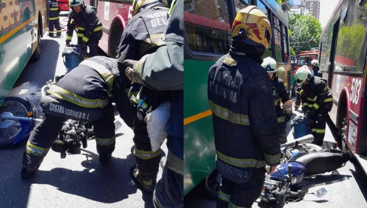 La mujer fue derivada en una ambulancia del SAME al Hospital Piñero por politraumatismos, a la vez que los bomberos inertizaron con agua el combustible derramado por la moto.