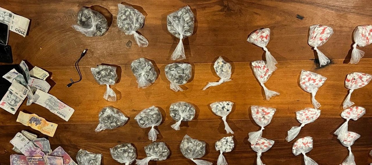 En total se secuestraron 630 dosis de cocaína, 90 dosis de pasta base y 510 envoltorios de marihuana prensada, además de dinero en efectivo, cinco teléfonos celulares y elementos utilizados para el fraccionamiento.
