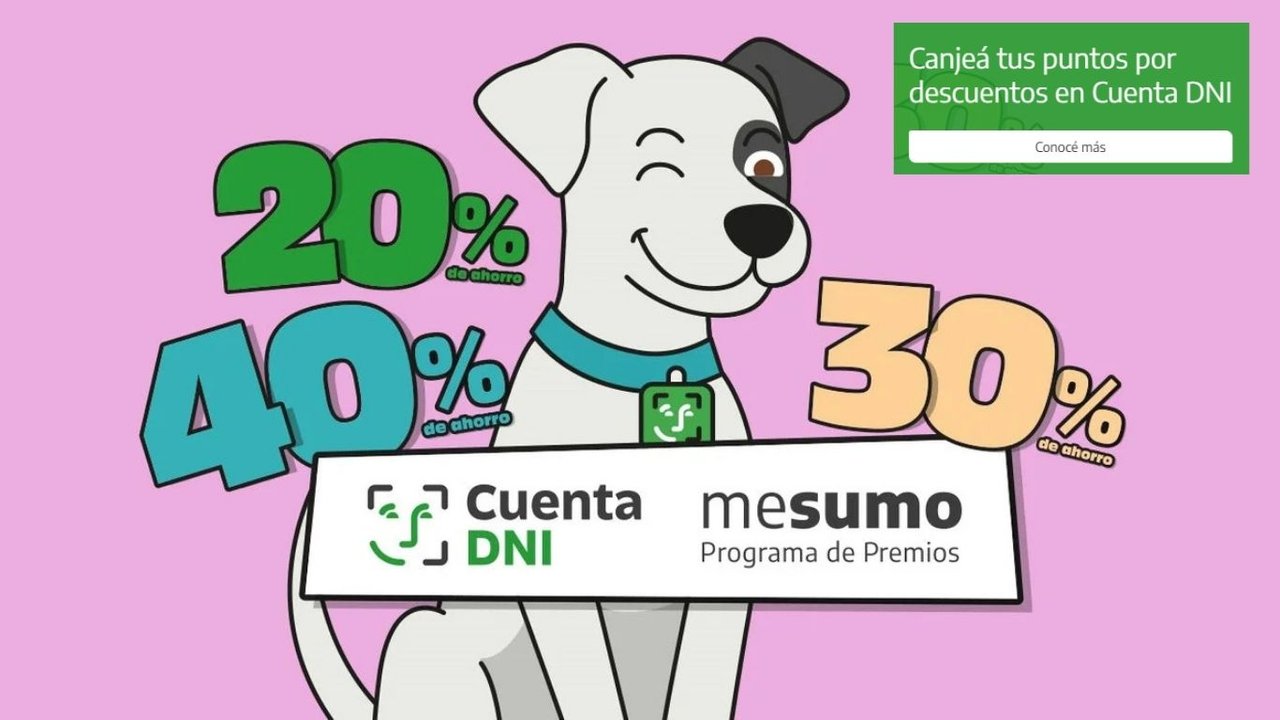 El programa Mesumo funciona con la acumulación de puntos que la persona va adquiriendo con el uso de las tarjetas de crédito y débito al comprar en diferentes locales y comercios adheridos al banco. Según supo la Agencia Noticias Argentinas, también se pueden generar como ventas cobradas mediante la aplicación billetera virtual Cuenta DNI Comercios. Los puntos acumulados se podrán canjear por productos y servicios publicados en el catálogo online.