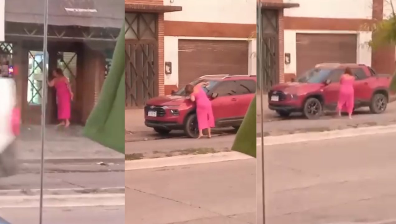 Mientras el hombre se encontraba en su puesto de trabajo, la agresora, Ana Rosmeri Peñalo, se mostraba alterada, a plena luz del día, descalza, rodeó una camioneta roja con un martillo en la mano, intentó causar daño de varias maneras y ante la falta de resultados, golpeó directamente sobre el vidrio del parabrisas donde logró varias abolladuras.