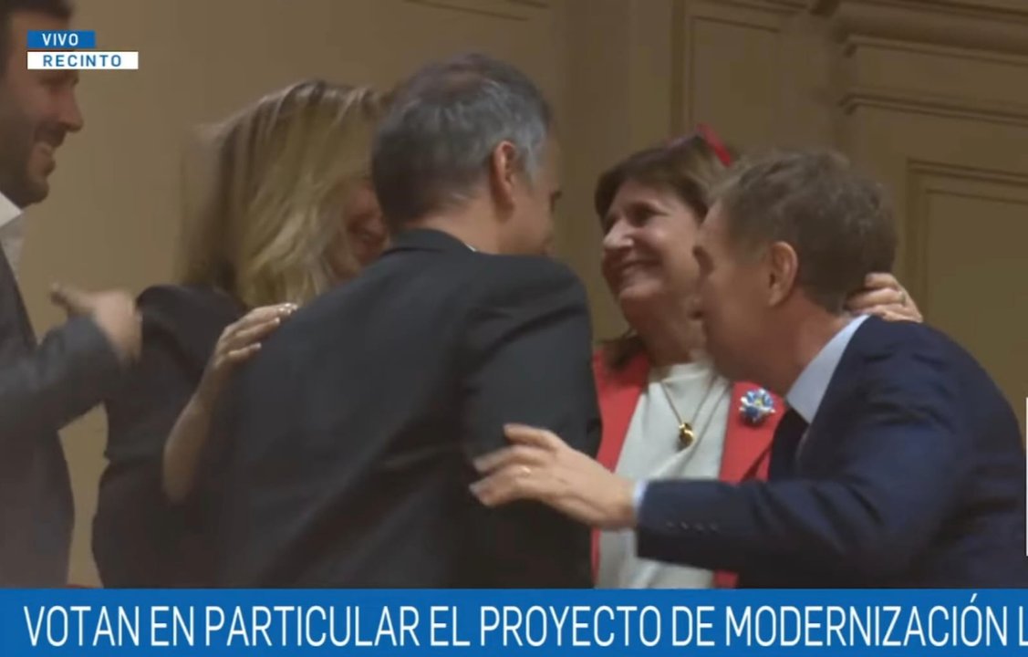 Minutos después, cuando la sesión siguió con la votación en particular, la titular de la bancada oficialista subió al palco para celebrar con los funcionarios nacionales, entre abrazos y sonrisas. #AgenciaNA