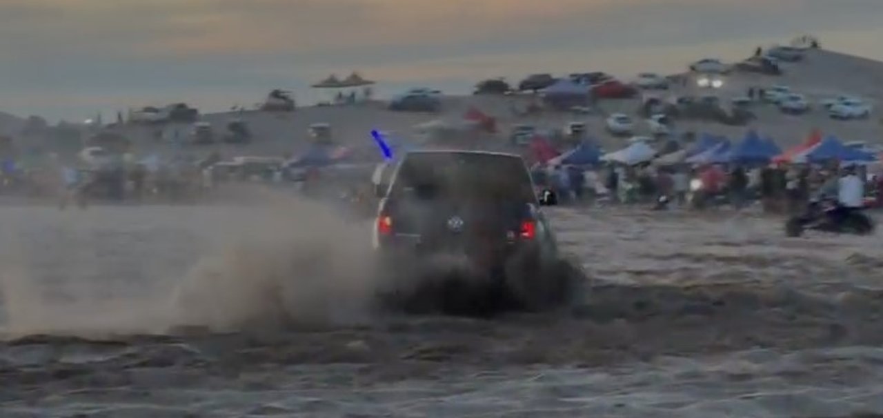 Los videos, a los que accedió la Agencia Noticias Argentinas, muestran al automovilista mientras acelera a toda velocidad junto a otros vehículos UTV y motocicletas en una zona muy concurrida por turistas que presenciaban el Enduro de Verano, una competición de cuatriciclos y motocross que se desarrolla desde 1992.