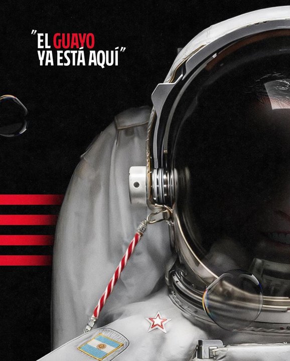 El Atlético partió una imagen en dos, de un lado se observó el casco de astronauta y del otro la cara del futbolista que levantó la Copa del Mundo en Qatar 2022. “El Guayo está aquí”, manifestó la cuenta oficial de la institución deportiva del Viejo Continente en ela descripción del posteo.